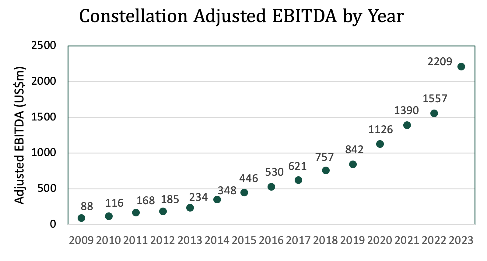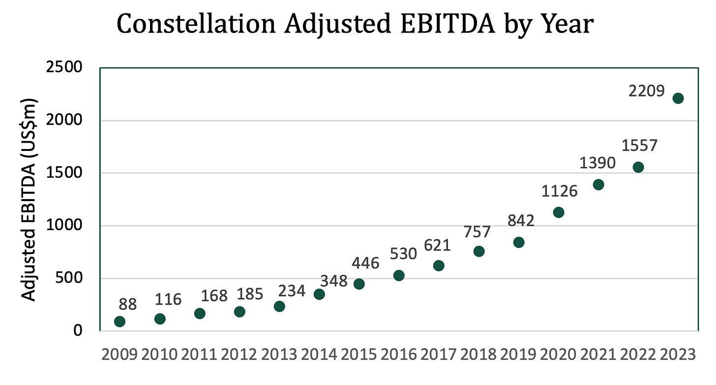 In 2023, Constellation did $4.025 billion in Adjusted EBITDA, up from $2.667 billion in the previous year, and up from $757 million in CY2018.