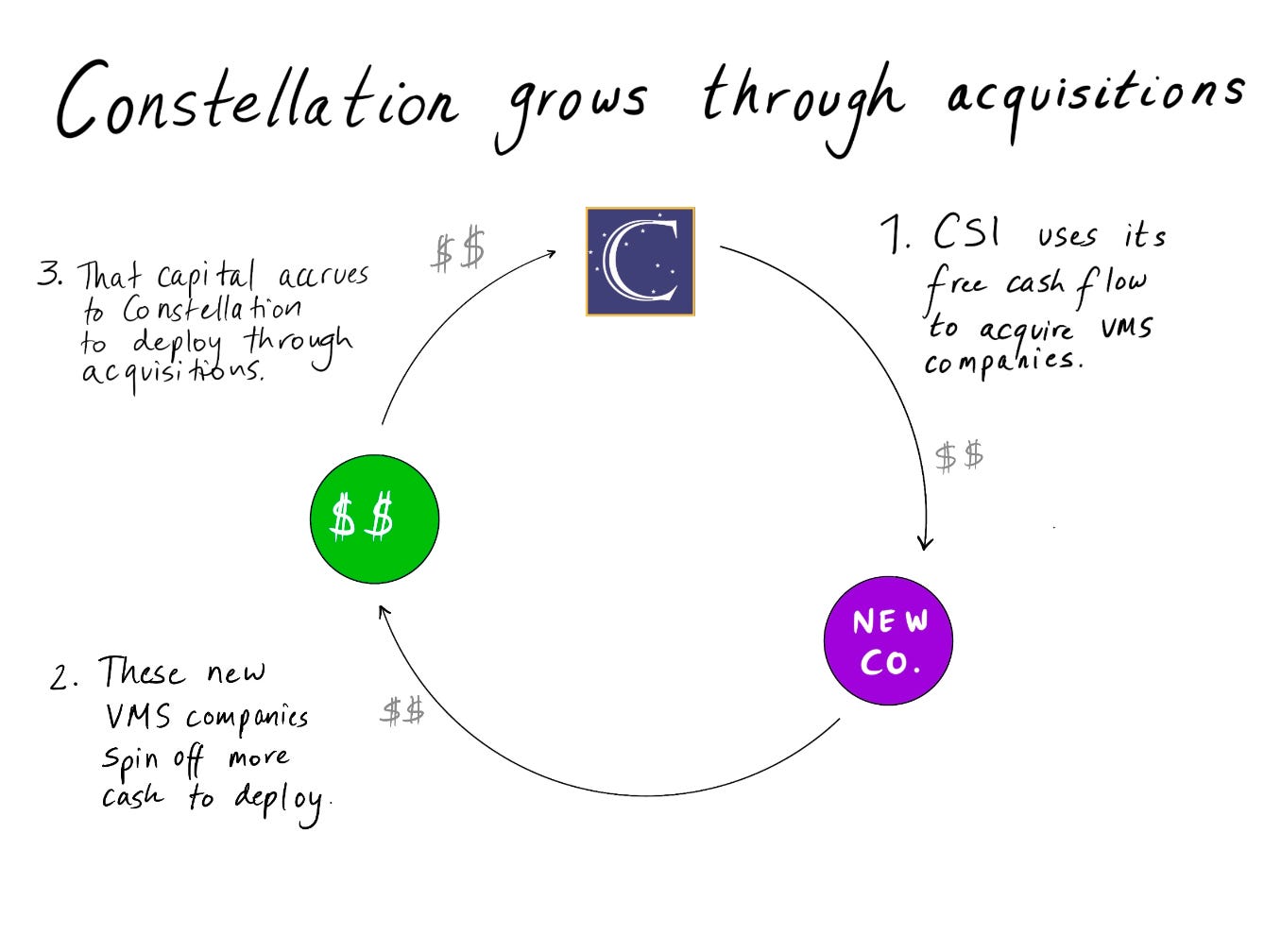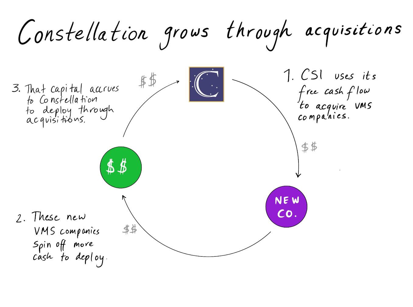 Given how small these businesses are, constellation typically acquires companies for ~0.8x revenue, which is incredibly cheap. They are then able to use the cashflows generated by these businesses to fuel further acquisitions, creating a virtuous cycle of growth.